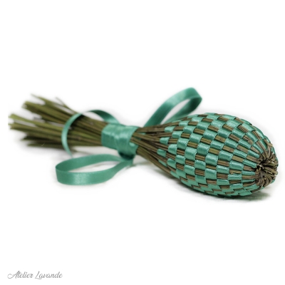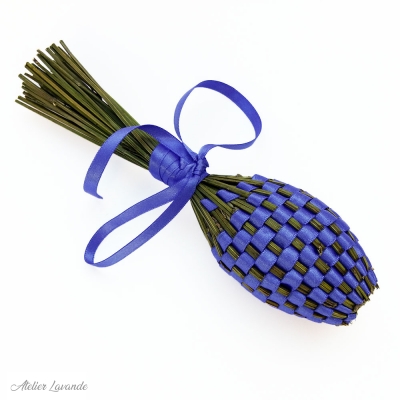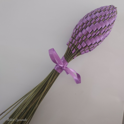 Les brins de lavande sont cueillis en Provence l'été, on les tisse puis ils séchent au soleil ainsi la fleur bien compacte gardera son parfum longtemps.