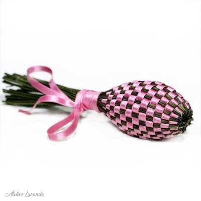 Fuseau de lavande de Provence Bicolore de fabrication artisanale avec ses rubans satin couleur Rose et Blanc.