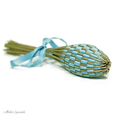 Fuseau de lavande de Provence Bicolore de fabrication artisanale avec ses rubans satin couleur Bleu.