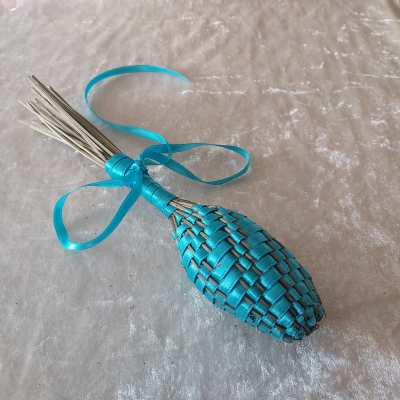 Fuseau de lavande de Provence de fabrication artisanale avec son ruban satin couleur bleu Turquoise.