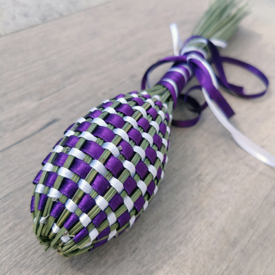 Fuseau de lavande de Provence Bicolore de fabrication artisanale avec ses rubans satin couleur Violet et Blanc.