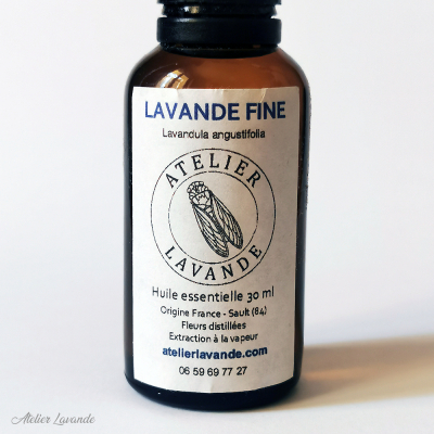 Lavande fine AOP, Huile essentielle 30ml, origine France Sault 84. Fleurs distillées, extraction à la vapeur.