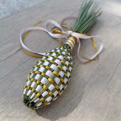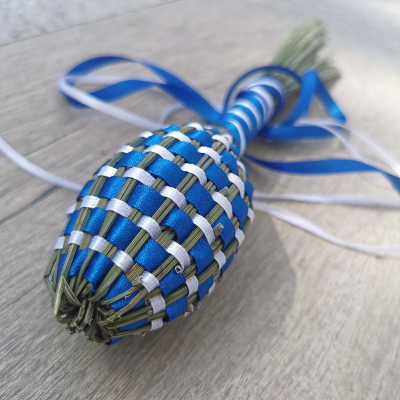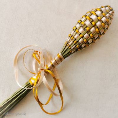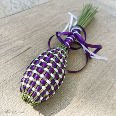 Fuseau de lavande de Provence Bicolore de fabrication artisanale avec ses rubans satin couleur Rose et Blanc.