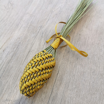 Fuseau de lavande de Provence Bicolore de fabrication artisanale avec son ruban Jaune Or ancien