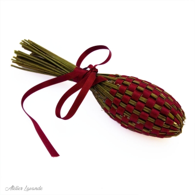 Fuseau de lavande de Provence Bicolore de fabrication artisanale avec ses rubans satin couleur Rubis et Blanc.