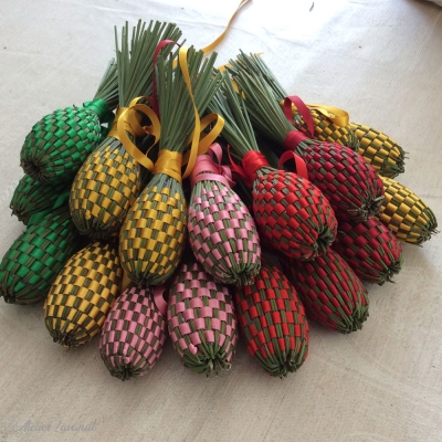 Les brins de lavande sont cueillis en Provence l'été, on les tisse puis ils séchent au soleil ainsi la fleur bien compacte gardera son parfum longtemps.