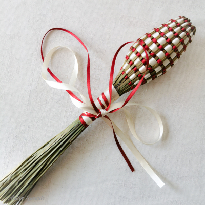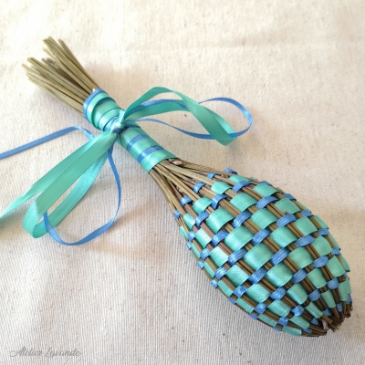 Fuseau de lavande de Provence Bicolore de fabrication artisanale avec ses rubans satin couleur Rose et Blanc.