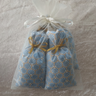 Ils sont en coton naturel imprimé, Ils contiennent environ15 grammes de fleurs de lavandin
