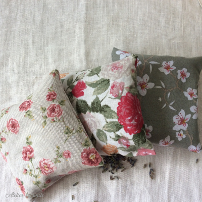 Un trio de coussins de lavandin à offrir ou à s'offrir, ( 3 coussins aux motifs assortis, coton, 25 g de fleurs)